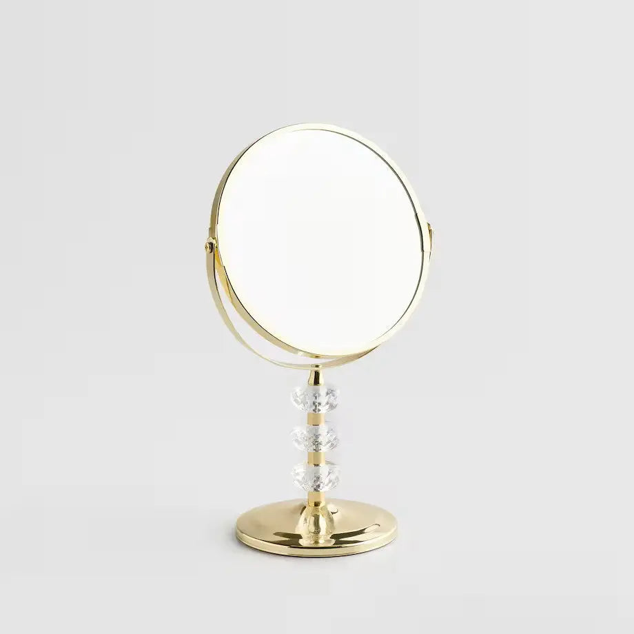 Zlatý, minimalistický rám v kombinácii s dekoratívnymi prvkami napodobňujúcimi kryštál dodáva nadčasovú eleganciu každému interiéru. Okrúhly tvar a jemné detaily robia z Cristel zrkadla vynikajúcu voľbu pre moderné aj klasické aranžmány. Perfektne ladí s toaletným stolíkom, môže zdobiť spálňu, kúpeľňu alebo štýlovú obývačku. Je to tiež skvelý nápad na vkusný darček.