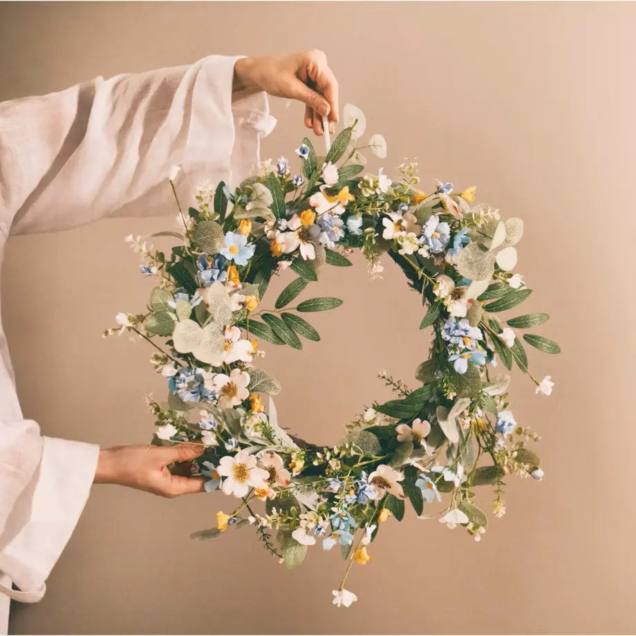 • Bohatý kvetinový motív: Starostlivo vybrané kvety v jarných odtieňoch robia z venca neprehliadnuteľný kúsok.