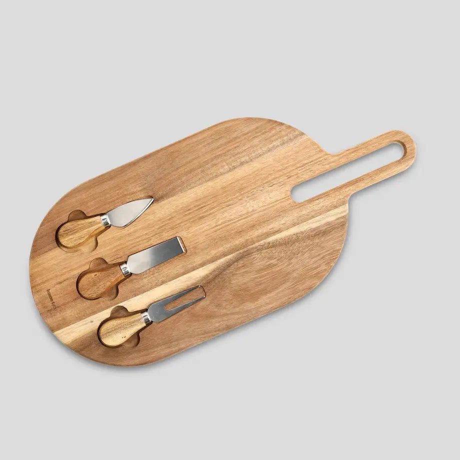 Elegantná servírovacia doska z akáciového dreva v teplej hnedej farbe. Vďaka svojej prirodzenej štruktúre a odolnosti je ideálny na servírovanie syrov, údenín, ovocia či iných pochúťok. Doska sa perfektne hodí k rôznym štýlom usporiadania stolov, dodáva rustikálny šarm a funkčnosť. Je vyrobený z kvalitného dreva a zaisťuje dlhodobé používanie a jednoduchú údržbu.