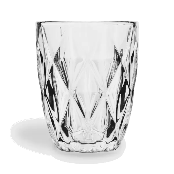 Jednoduché v podobe skl, zdobené konštrukčnými dekoráciami v podobe diamantov, pripomínajúcimi krištáľové poháre. Štruktúra nádoby sa zdá byť "prešívaná". Sada obsahuje 4 poháre s kapacitou 280 ml, vyrobené z číreho skla, ktoré krásne odráža svetlo.