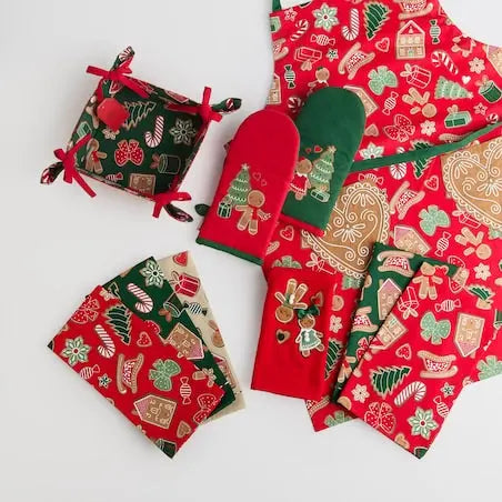 Táto žiarivo červený kuchynský uterák zdobená perníkovými mužíkmi a srdiečkami prináša do vášho interiéru slávnostnú atmosféru. Starostlivo prepracované detaily a farebná schéma inšpirovaná vianočnou tradíciou z nej robia estetický doplnok moderného, klasického a rustikálneho kuchynského dizajnu. Je tiež skvelým praktickým a štýlovým darčekom pre blízkych.