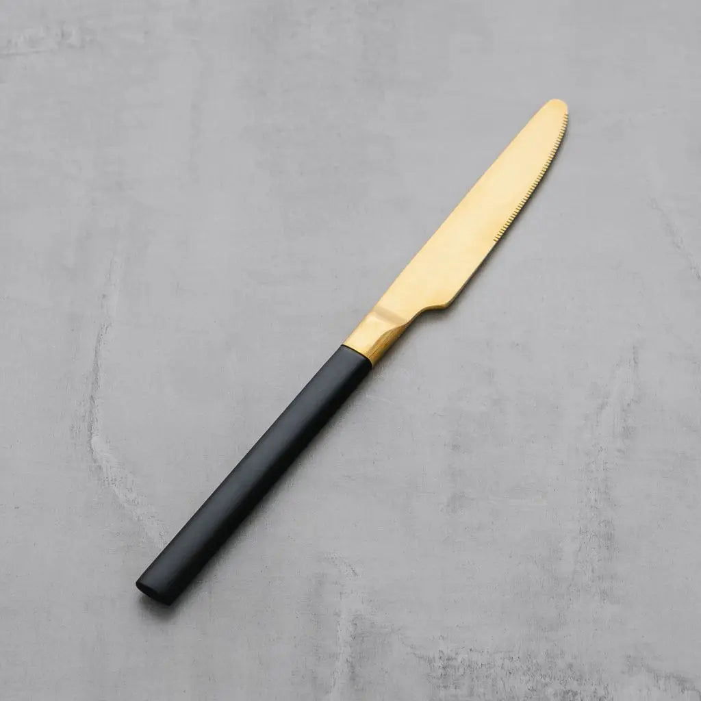 Zlato čierny nôž z nehrdzavejúcej ocele. Má klasický design. Vhodná do domácností, aj pre profesionálnu gastronómiu.