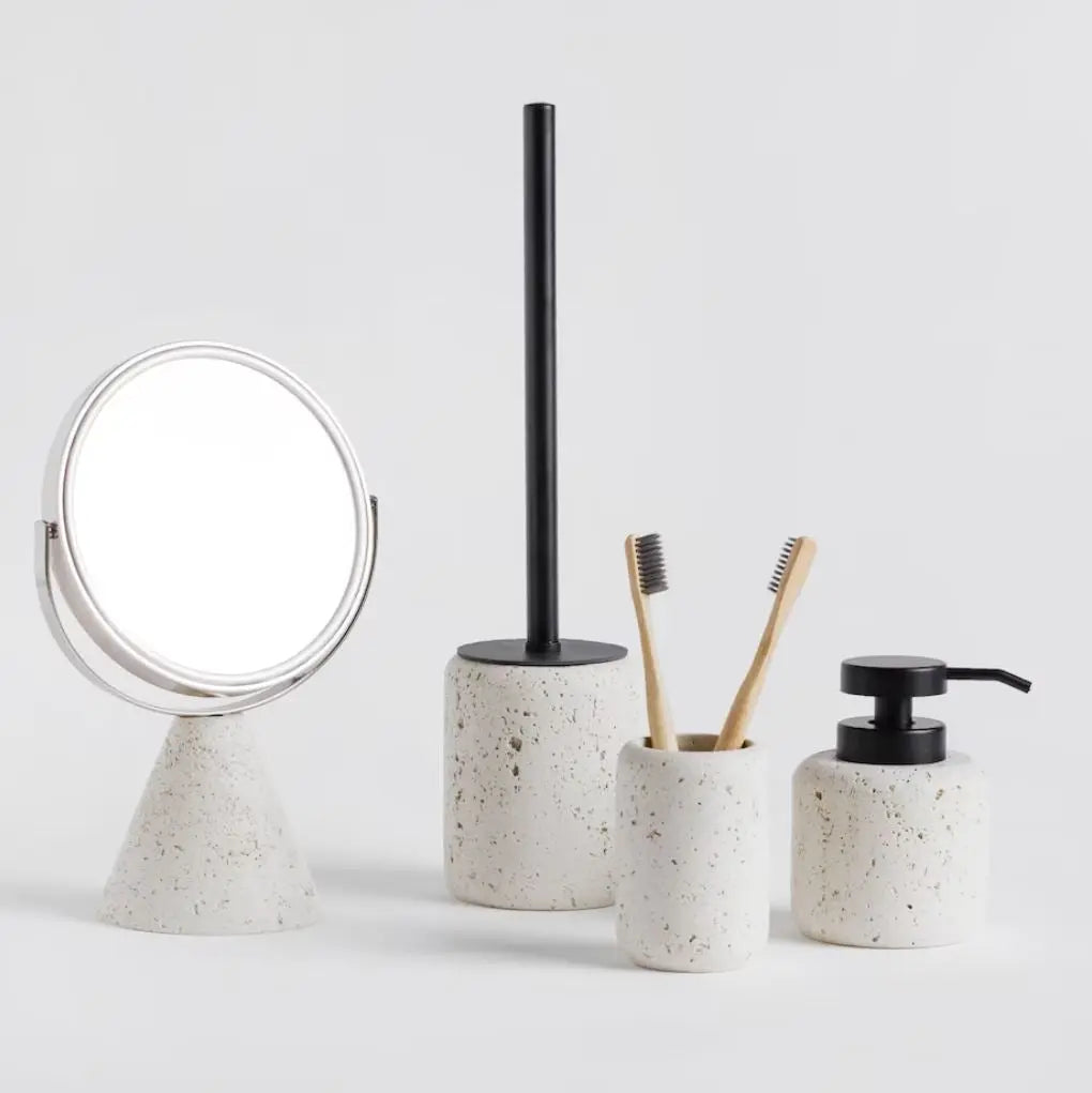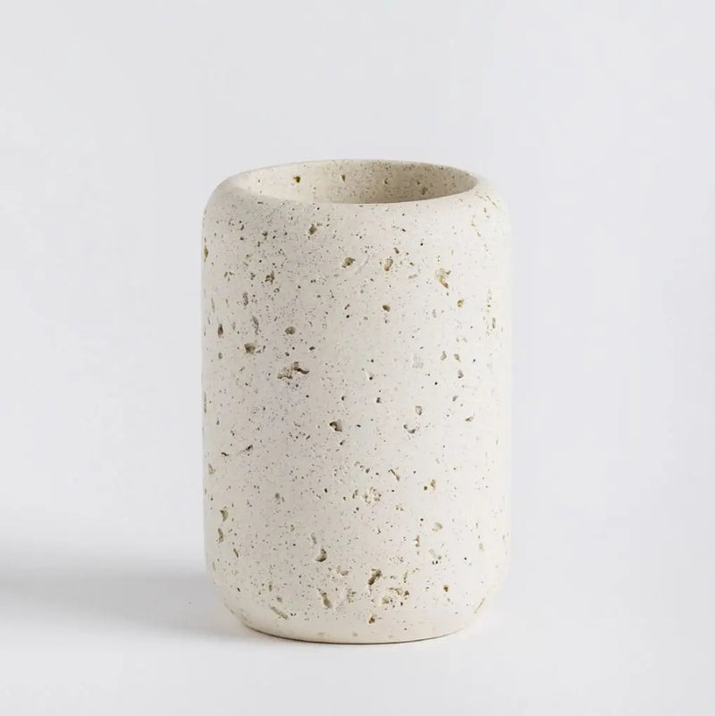 Béžový kúpeľňový pohár. Dokonalý doplnok k dizajnu interiéru vašej kúpeľne. Poskytuje pohodlie a hygienu pri každodenných činnostiach v kúpeľni. Ideálny na odkladanie zubných kefiek a zubnej pasty.