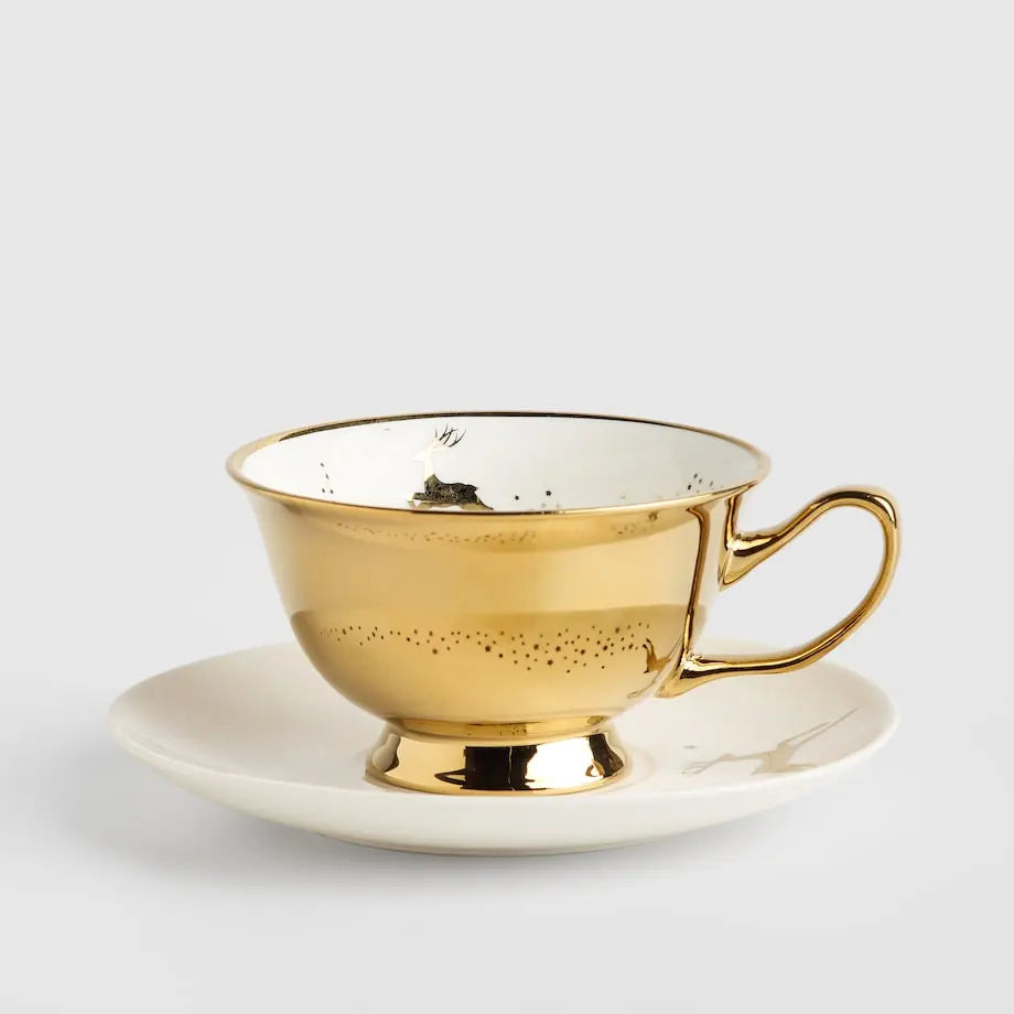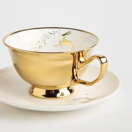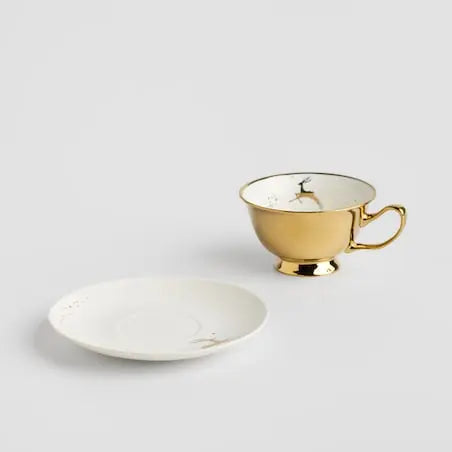 Zlatá šálka a snehobiely podšálka vytvárajú elegantný a slávnostný pár. Jemný motív soba a zlatej hviezdy dodáva celému kusu magické čaro. Šálka s podšálkou Dirdis dokonale doplní vašu sviatočnú výzdobu a bude skvelým darčekom pre milovanú osobu.