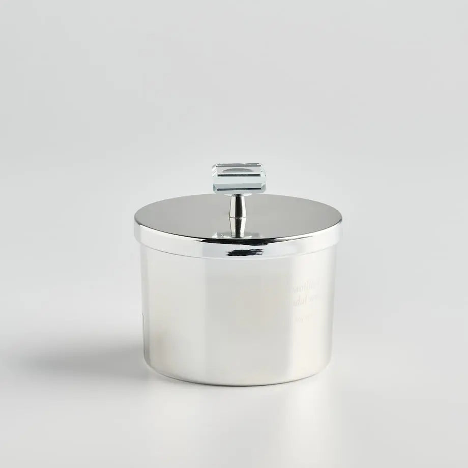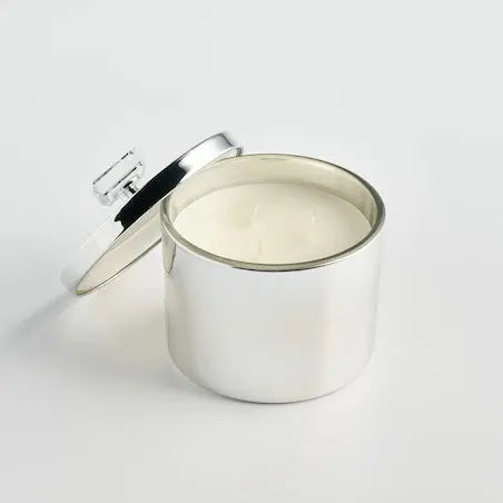 Vonná sviečka v elegantnej striebornej kovovej nádobe. Luxusný dizajn a jemná vôňa vytvárajú jedinečnú atmosféru, ideálnu na relaxáciu a aromaterapiu. Kovová nádoba nielenže vyzerá štýlovo, ale zaisťuje aj bezpečné horenie sviečky. Ideálna do každého interiéru, dodáva nádych trblietky a útulnosti.
