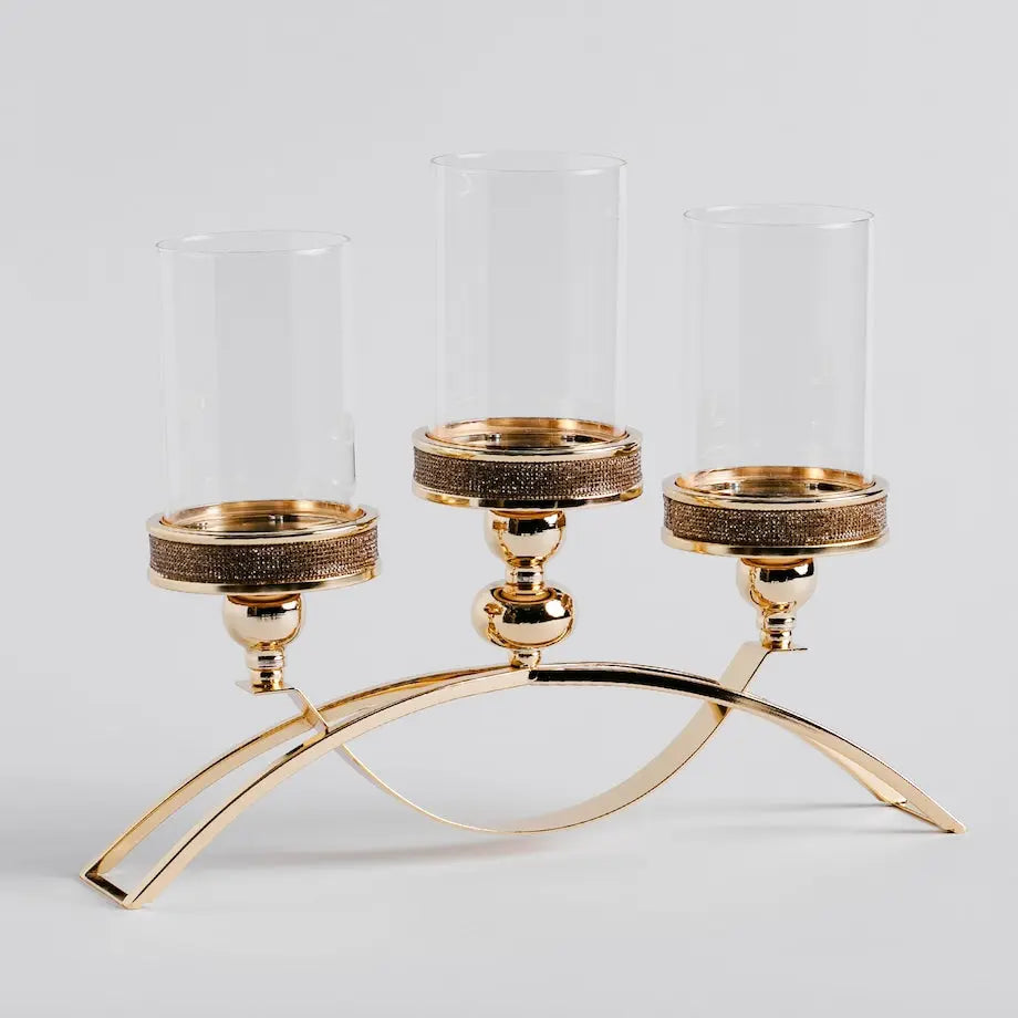 Tapessimo Trio je zlatý trojitý svietnik zdobený kubickým zirkónom na sklenenej základni. Je vhodný na čajové sviečky alebo stĺpikové sviečky. Tento dekoratívny svietnik bude elegantným doplnkom komody v obývačke alebo jedálenského stola. Pri večeri s hosťami sa oplatí zakomponovať tento atmosférický doplnok a osvetliť ich žiarou sviečok. Vytvorí sa tak útulná atmosféra a spríjemní sa čas strávený s blízkymi.