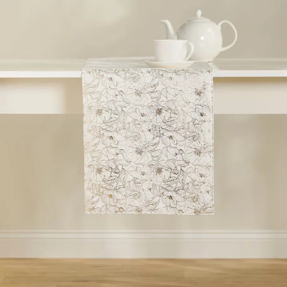 Pridajte do jedálne jedinečný nádych s štólou s potlačou s rozmermi 35x180 cm. Jemný kvetinový motív a elegantná biela okamžite premenia každý interiér, zdôrazňujúc štýl a triedu vášho stola.