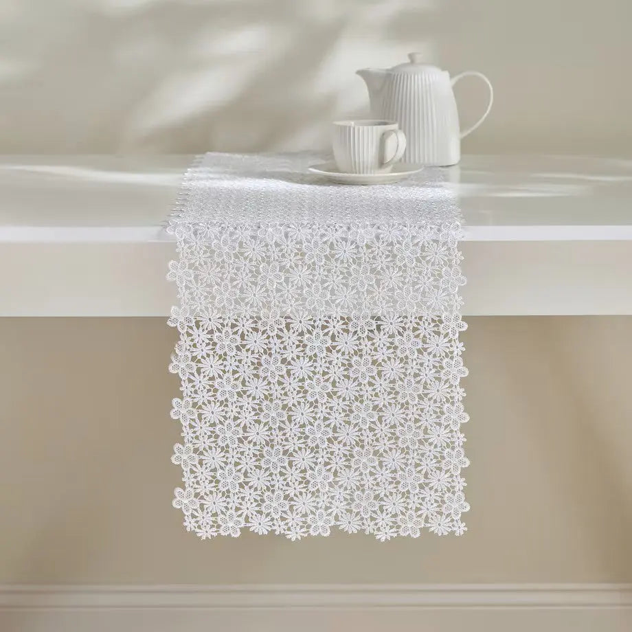 Premeňte svoju jedáleň s florinským čipkovaným behúňom na stôl 35x180 cm s kvetinovým motívom – ideálna voľba pre milovníkov elegantných aranžmánov stolov, ktorí si cenia štýl a kvalitu.