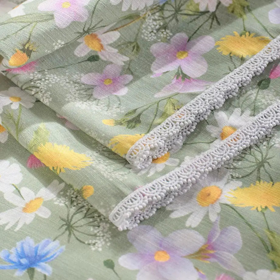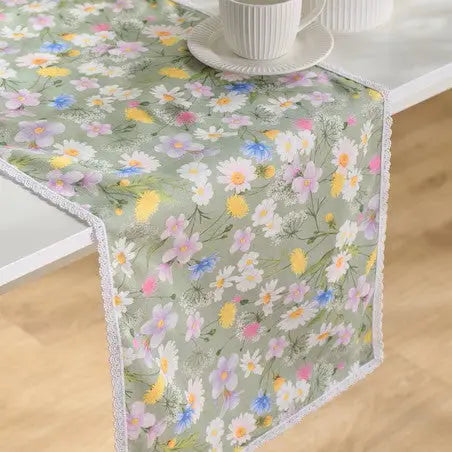 Objavte ľahkosť prírody vo svojom domove! Behúň na stôl s potlačou melow 35x180 cm je ideálnou voľbou, ak chcete do jedálne priniesť sviežosť a jemný štýl. Jedinečný kvetinový vzor a nadčasová kombinácia jasne zelených a prírodných motívov zdôraznia charakter každého interiéru a potešia ho nielen pri každodennom používaní, ale aj pri výnimočných príležitostiach.