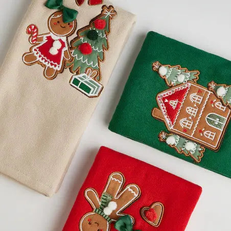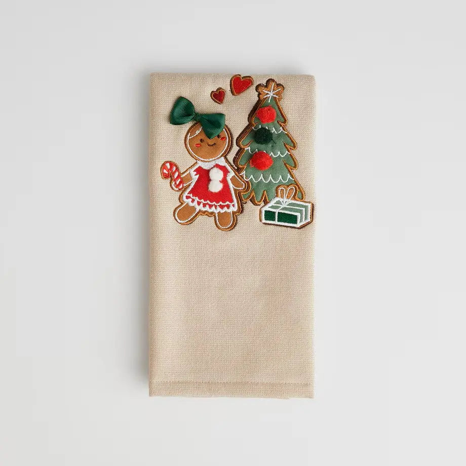 Béžovú farbu ginno uteráka zdôrazňujú vianočné vyšívané nášivky s perníčkou, vianočným stromčekom a darčekovým motívom. Jemné detaily v červenej a zelenej farbe a ozdobné bambuľky robia z produktu nielen praktický doplnok, ale aj dekoratívny prízvuk v kuchyni. Ideálne do klasických a moderných interiérov, ideálne aj ako darček.