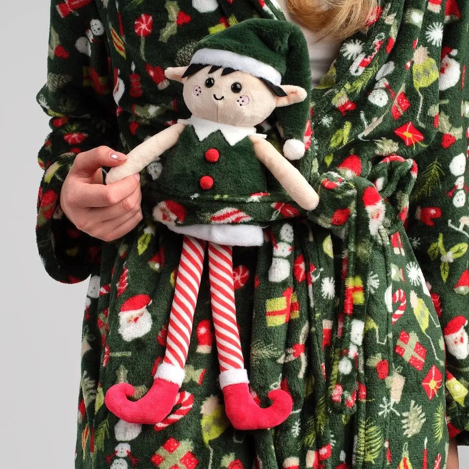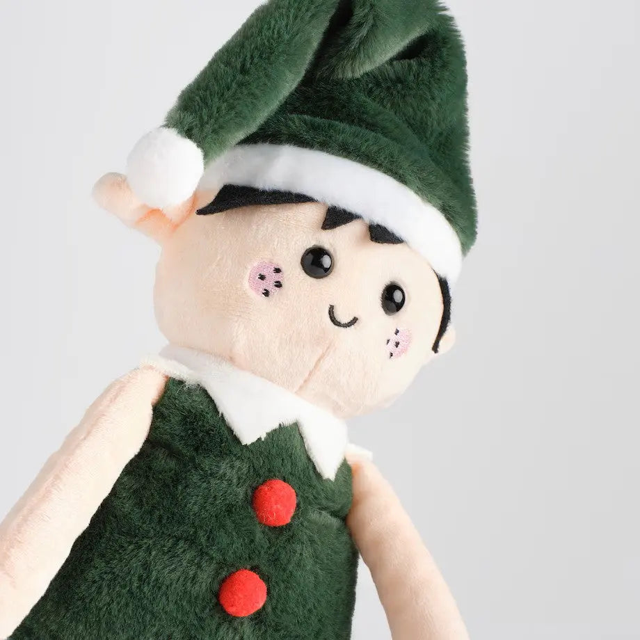 Elfovia sú roztomilá postavička v klasických vianočných farbách. Červená, zelená a biela vytvárajú krásnu kompozíciu, ktorá dokonale zapadá do vianočnej atmosféry. Oblečená v zelenej bunde a s červenými pruhovanými nohami vyzerá Elfi mimoriadne očarujúco. Táto plyšová hračka bude skvelou dekoráciou detskej izby, ako aj dokonalým nápadom na vianočný darček.