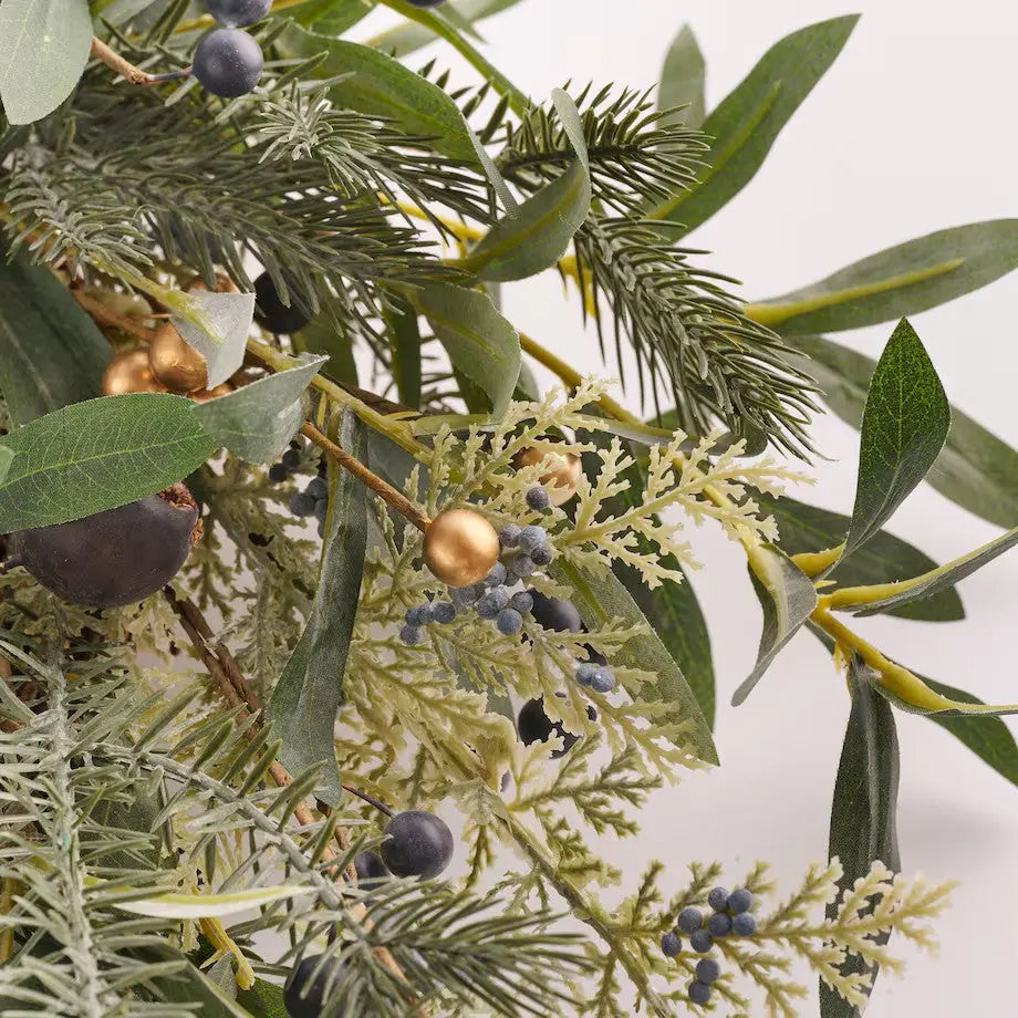 Blissino veniec je vyrobený z kvalitného plastu a bambusu, čo zaručuje odolnosť a dlhodobý efekt prírodnej krásy. Napodobňovanie ihličia, listov a drobných plodov vyzerá mimoriadne realisticky, vďaka čomu je produkt prakticky bez údržby a nevyžaduje zalievanie ani špeciálnu starostlivosť. Materiál si zachováva sviežosť a farby počas celej sezóny, čo vám umožní vychutnať si výzdobu bez ohľadu na podmienky doma.
