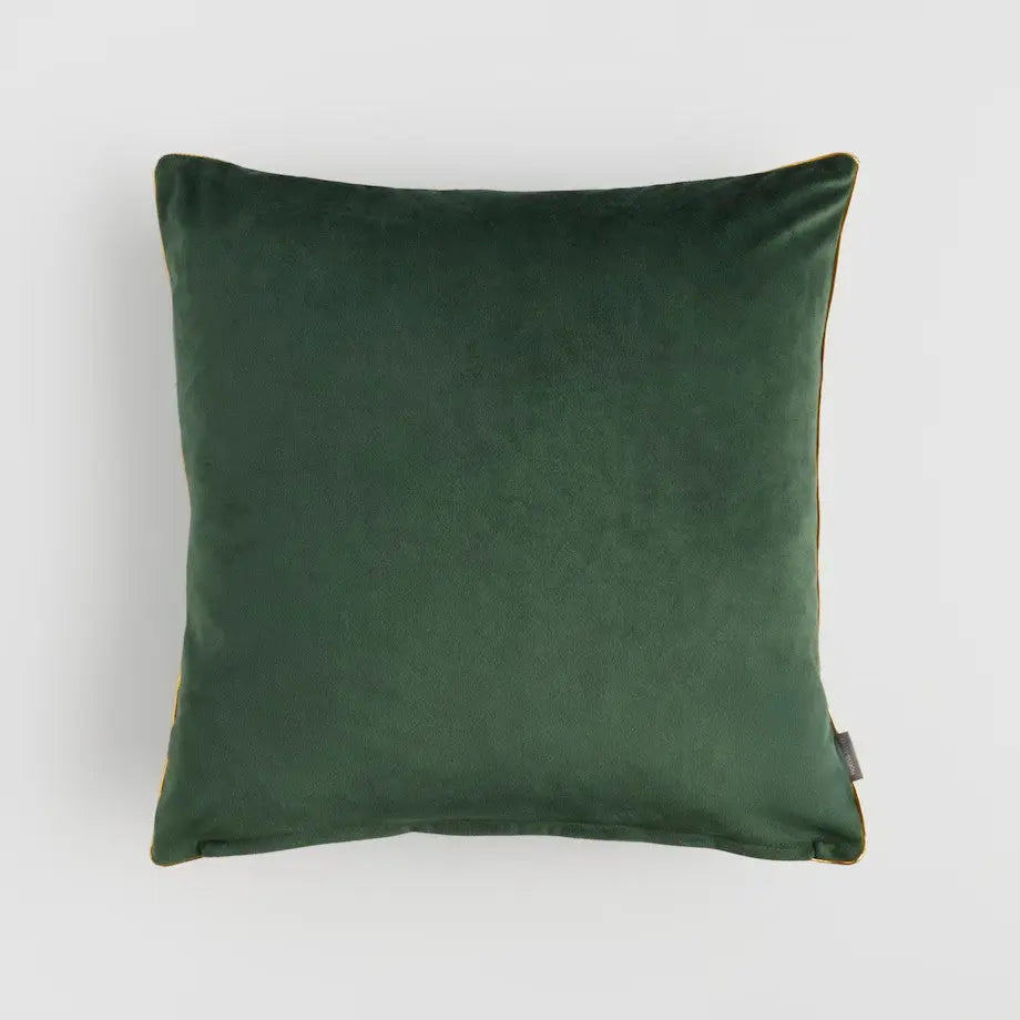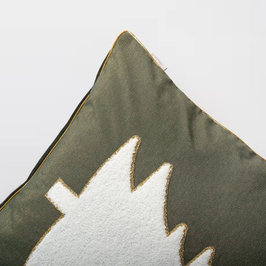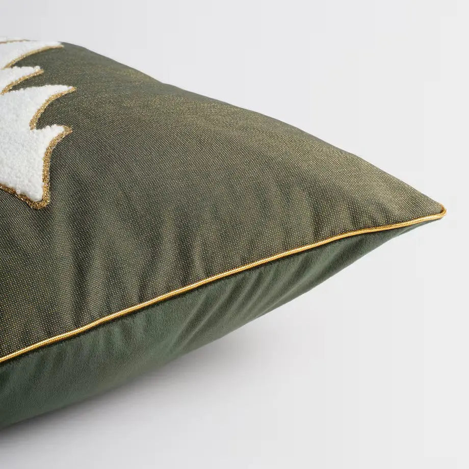 Intensive dunkelgrüne Farbe , feiner Glanz und gesticktes weißes und goldenes Muster mit einem Nadelbaummotiv Sie verleihen diesem Kissenbezug einen einzigartigen Charakter. Goldverzierungen Hervorhebungen am Rand Eleganz und das Produkt passt perfekt hinein Weihnachtsdekorationen , moderne oder klassische Inneneinrichtungen. Kissenbezug Medis 45x45 cm Ist eine ausgezeichnete Wahl für Sofa, Bett, Sessel und Eine tolle Idee für ein einzigartiges Geschenk für Liebhaber stilvoller Wohnaccessoires .