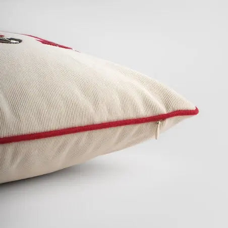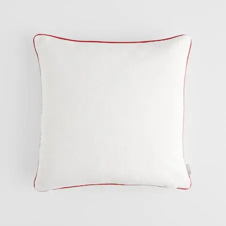• Einfassung: Der Rand des Bettbezugs ist mit einer dünnen roten Paspelierung hervorgehoben, die sich bis in den Reißverschluss erstreckt.