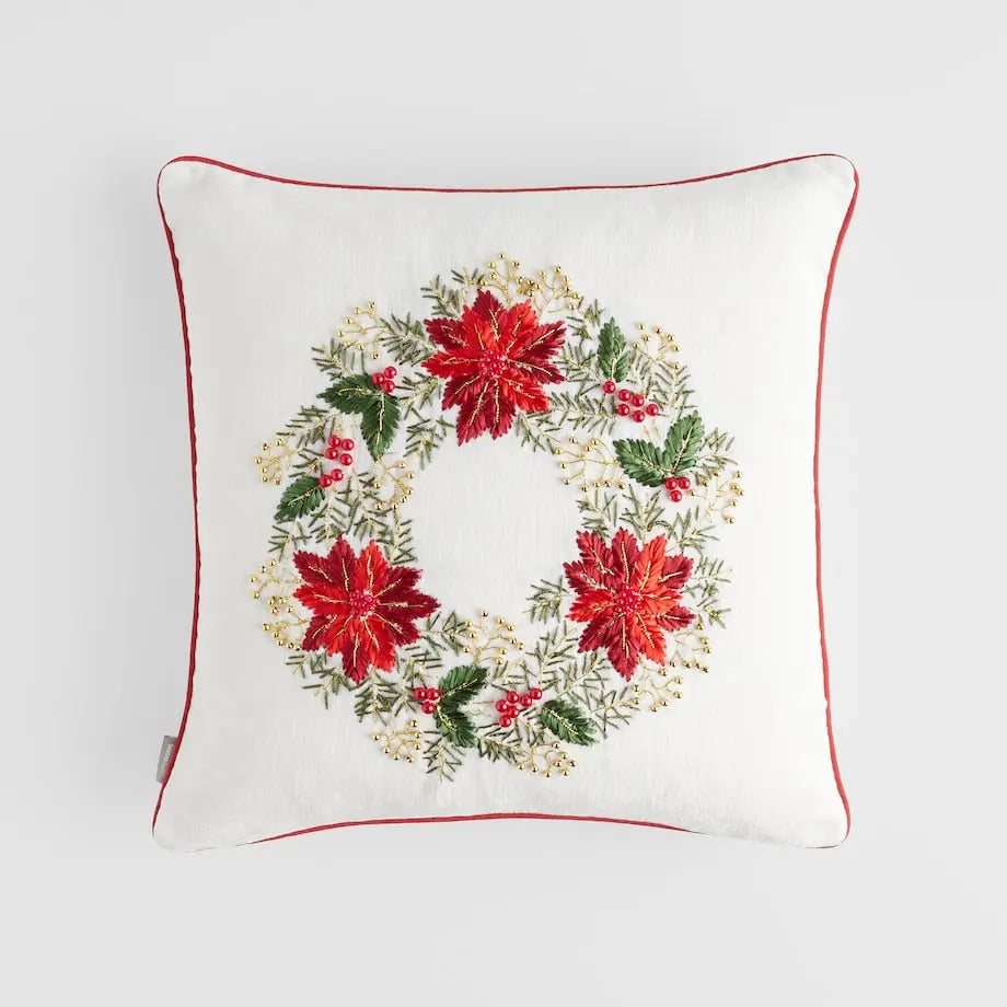 Dies ist ein quadratischer, dekorativer Kissenbezug, der Ihrem Interieur eine traditionelle Festtagsatmosphäre verleihen soll.