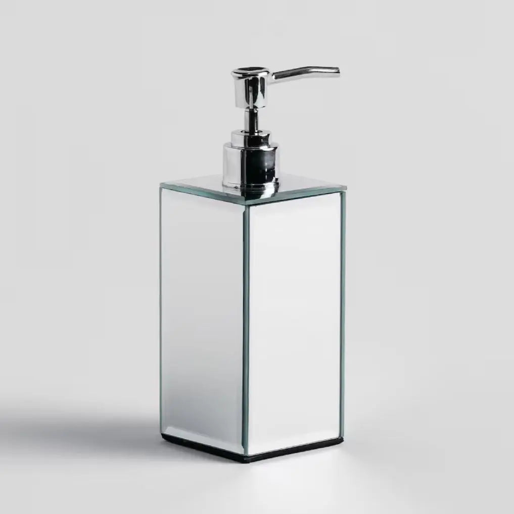 Silberner Spender. Es hat eine silberne Kunststoffpumpe. Sein großer Vorteil ist die Möglichkeit, es für verschiedene Flüssigkeiten Ihrer Wahl zu verwenden: Flüssigseife, flüssige Desinfektionsmittel, Gesichtsreinigungswasser, Gesichtsreinigungsöl, Geschirrspülmittel. Ein stilvolles Accessoire, ideal für Bad und Küche. Es spart Reinigungsflüssigkeit und begrenzt gleichzeitig die Ausbreitung von Bakterien. Einfaches Befüllen durch Abschrauben der Oberseite des Spenders.