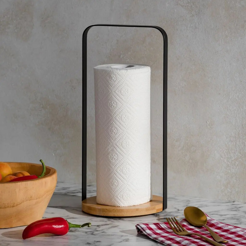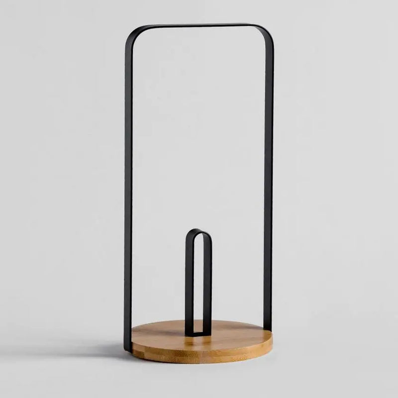 Schwarzbrauner Papierständer.