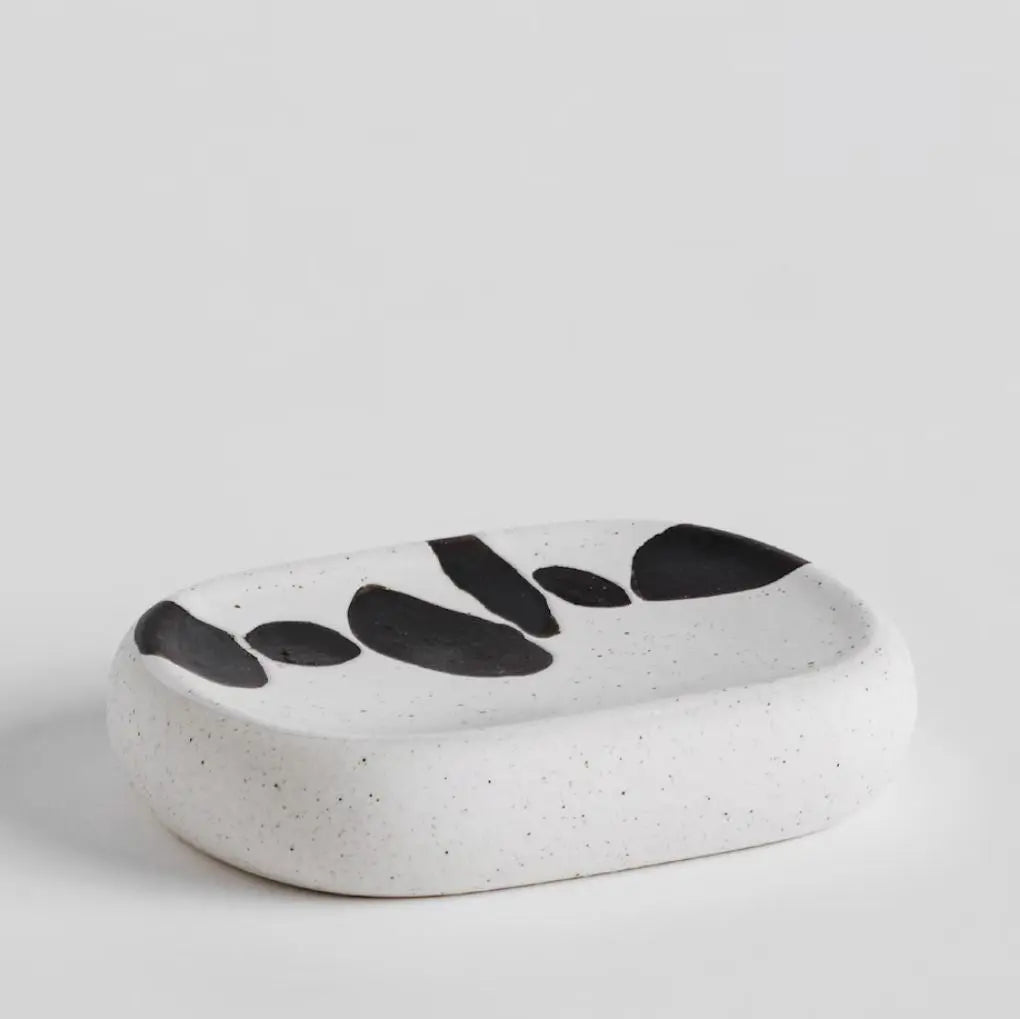 Weiße Seifenschale aus Keramik. Es ist eine elegante und praktische Ergänzung für jedes Badezimmer. Es setzt einen frischen, modernen Akzent und die massive Keramik sorgt für Langlebigkeit und einfache Reinigung. Es ist ideal für die Aufbewahrung von Seife und verleiht dem Badezimmer Charme und Funktionalität.