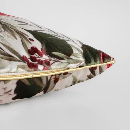 Der Kissenbezug mit Poinsetta-Print besticht durch ein elegantes Weihnachtsmotiv: Auf hellem Hintergrund zieren üppige, leuchtend rote Weihnachtssternblüten, grüne Blätter und zarte Zweige das Motiv. Die goldene Borte unterstreicht den luxuriösen Charakter des Kissenbezugs. Dieser dekorative Stil passt sowohl zu klassischen als auch zu modernen Einrichtungsstilen – der Kissenbezug ist ideal für die Feiertage, eignet sich aber auch hervorragend als Geschenk für Ihre Lieben oder als stilvolles Accessoire in der Winterzeit.