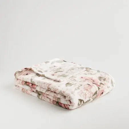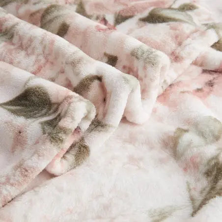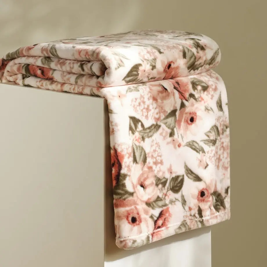 Diese 300 g/m² Polyesterdecke misst 150 cm x 200 cm. Sie ist hellrosa und hat ein zartes Blumenmuster. Sie ist weich, flauschig und fühlt sich angenehm an. Ideal für den Alltag oder als dezentes Deko-Accessoire.