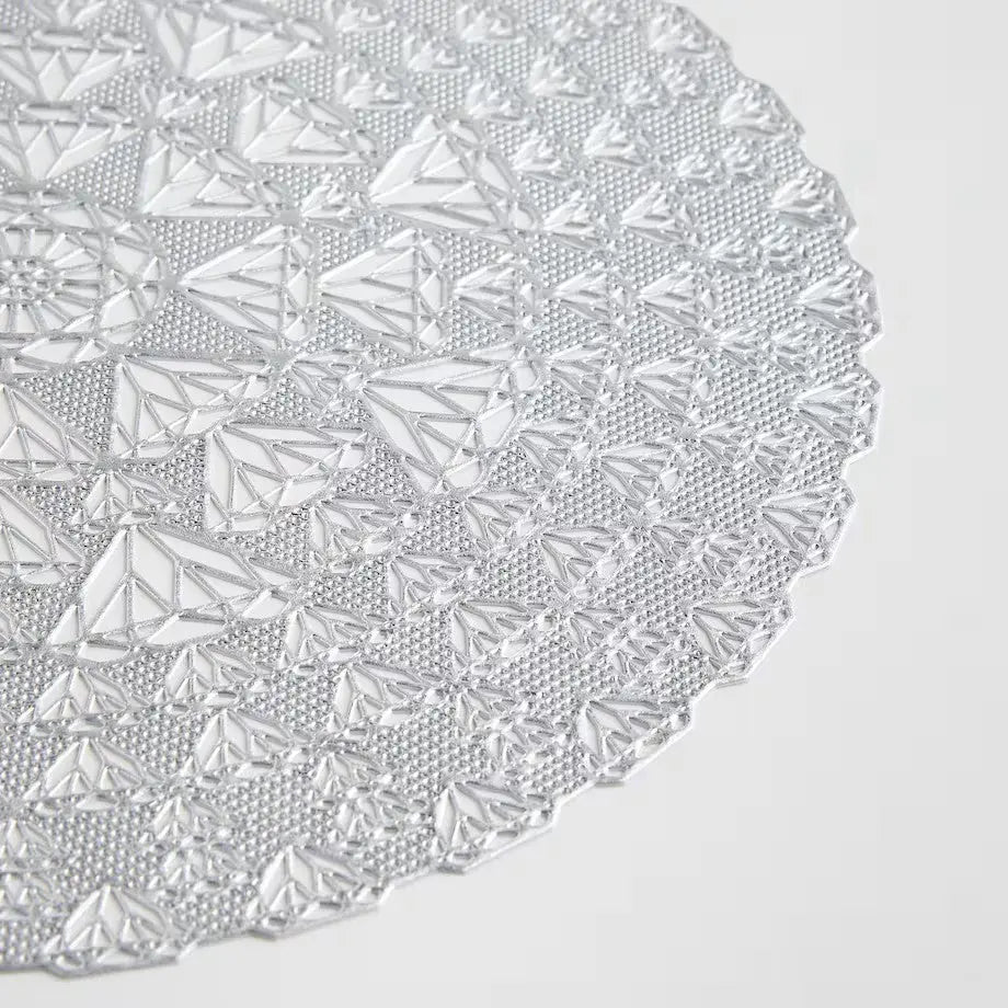 Das dekorative PVC-Platzset in elegantem Silber mit einem Durchmesser von 38 cm ist eine praktische und stilvolle Ergänzung für jeden Tisch. Seine strapazierfähige und pflegeleichte Oberfläche schützt die Tischplatte vor Kratzern und Schmutz und verleiht dem Raum gleichzeitig einen modernen Glanz. Dank seiner universellen Größe eignet sich das Platzset ideal für den Alltag und festliche Anlässe und unterstreicht dabei seine ästhetische Wirkung.