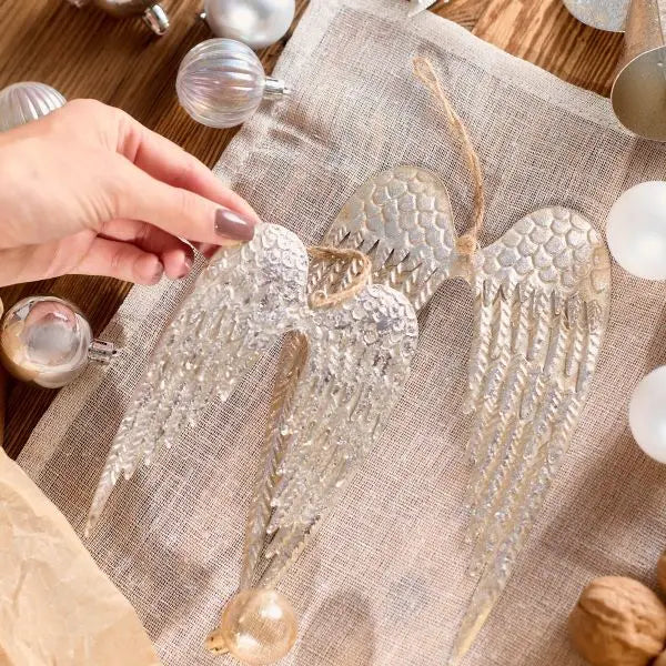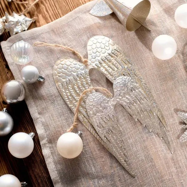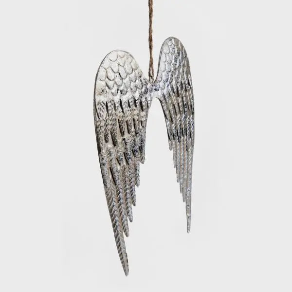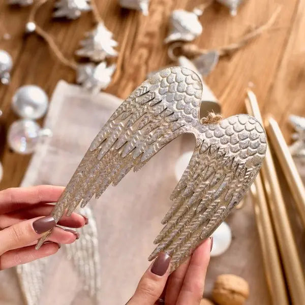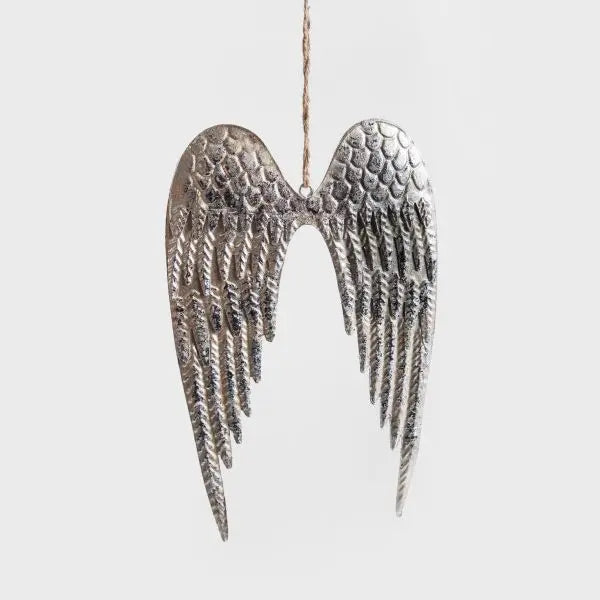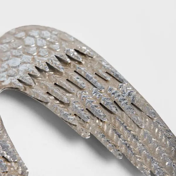 Lassen Sie diese wunderschönen silbernen Flügel aus altem Metall Ihr Zuhause bereichern und einen Hauch von Weihnachtszauber verbreiten. Die aus Metall gefertigten Flügel bestechen durch sorgfältig gearbeitete Details, die ihnen ein realistisches Aussehen verleihen. Ihre silberne Farbe verleiht ihnen Glanz und bringt gleichzeitig Klasse und Stil in den Raum.