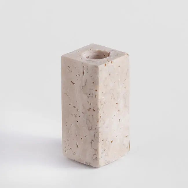 Beiger Kerzenständer aus Marmor. Es wird Ihren Esstisch perfekt schmücken oder Ihr Interieur ergänzen. Es findet in jedem Raum seinen Platz und seine Anwendung und verwandelt ihn wunderschön und geschmackvoll. Das warme Licht der Kerzen schafft in jedem Raum eine friedliche und gemütliche Atmosphäre.