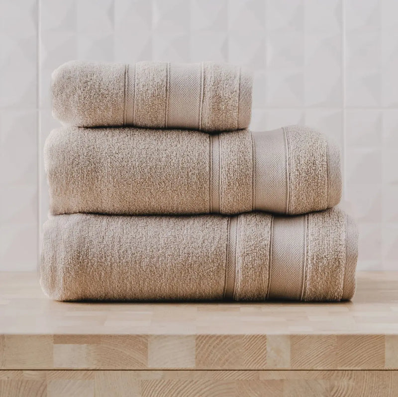 Beigefarbenes Baumwollhandtuch. Es ist ein praktisches und stilvolles Accessoire, das eine funktionale Ergänzung für jedes Badezimmer darstellt. Der elegante Beigeton verleiht dem Badezimmer ein Gefühl von Ruhe und Harmonie und passt perfekt zu verschiedenen Einrichtungsstilen. Seine neutrale Farbe verleiht dem Innenraum Wärme und Gemütlichkeit. Es besteht aus 100 % Baumwolle und bietet eine weiche Textur, außergewöhnliche Saugfähigkeit und Haltbarkeit für eine lange Nutzungsdauer.