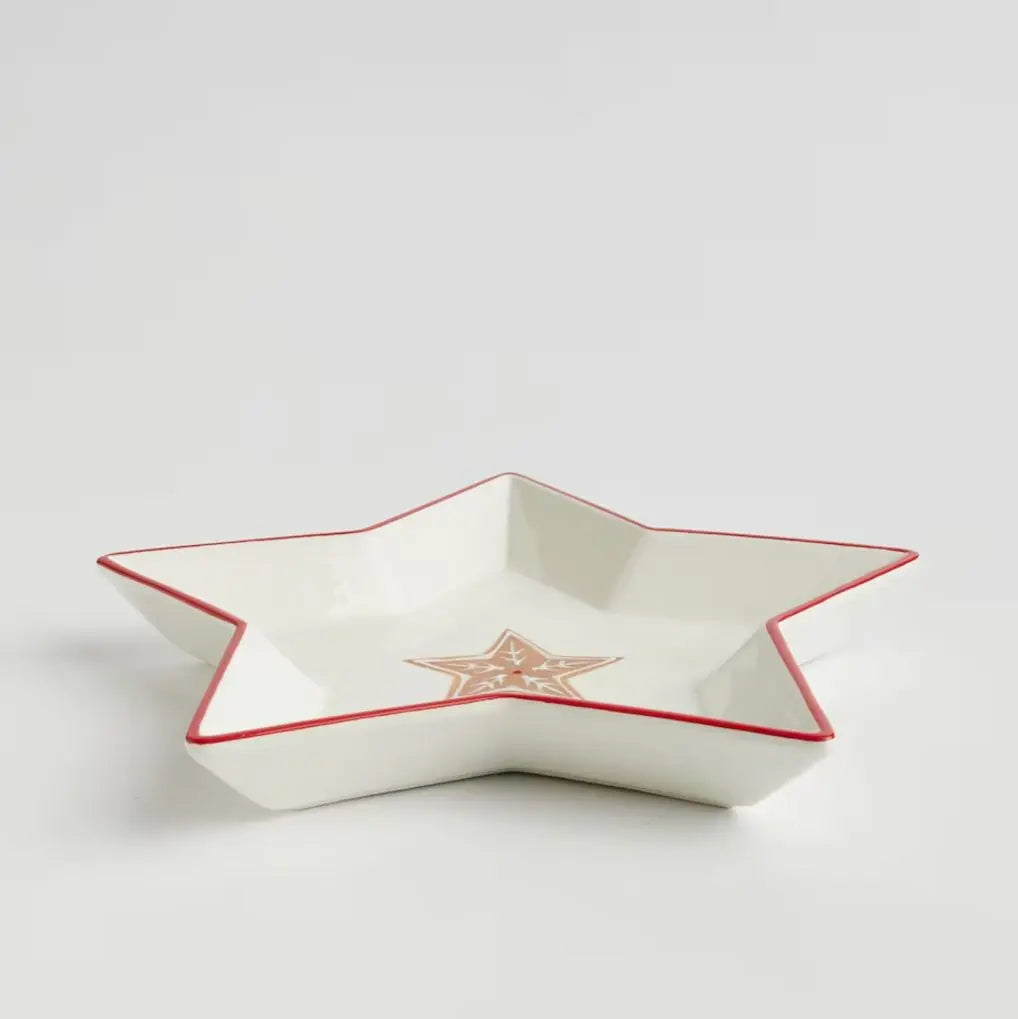 Weiße Dolomit-Weihnachtsschale in Form eines Sterns. Es wird wirklich schön auf dem Tisch aussehen. Es sorgt für ein angenehmes kulinarisches Erlebnis.
