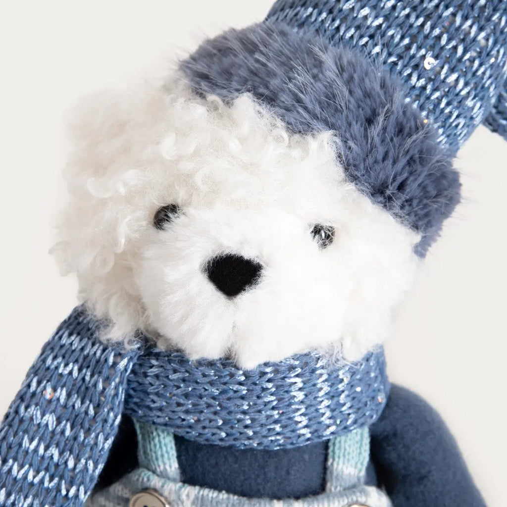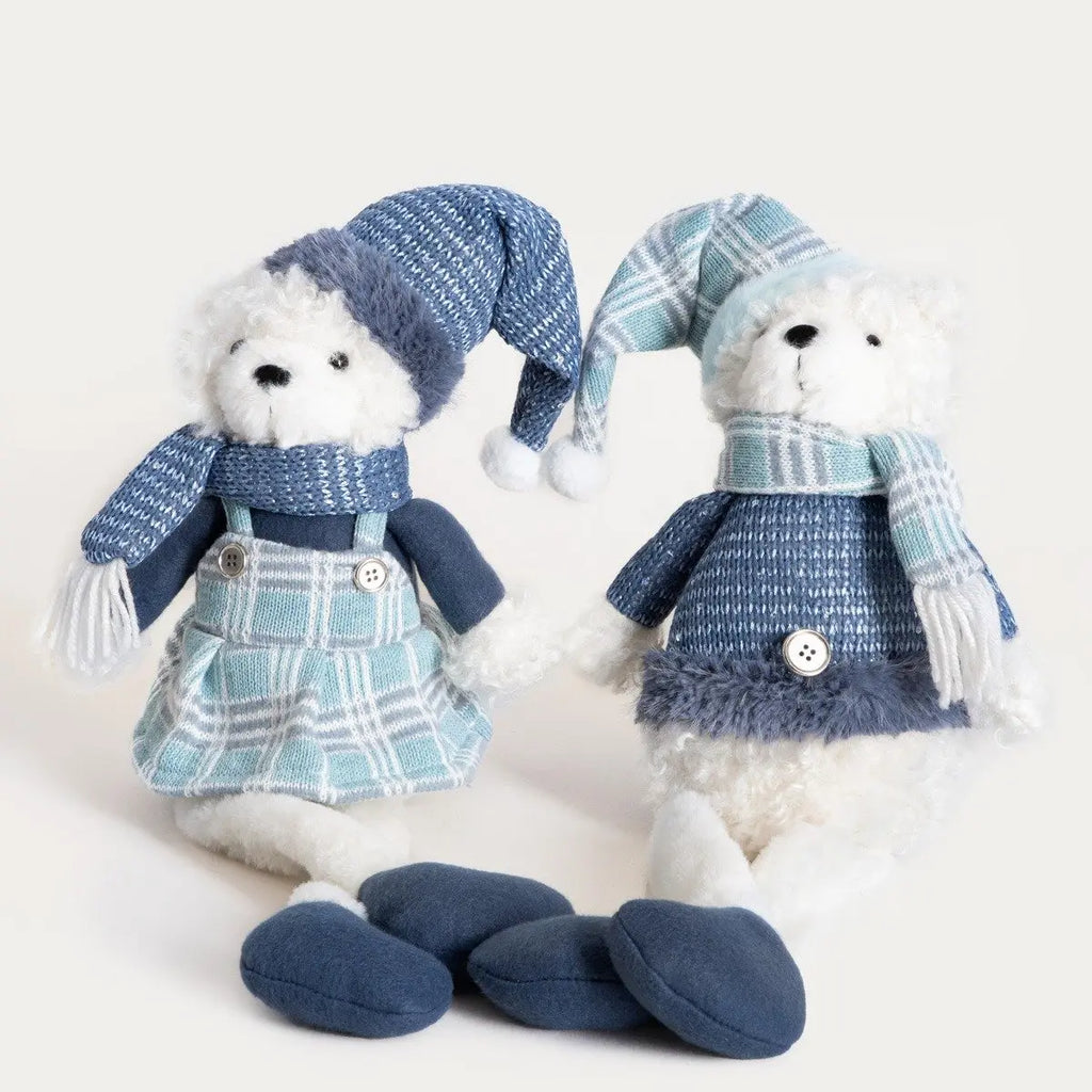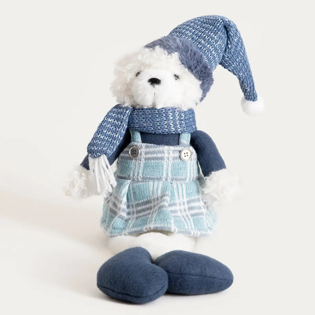 Schmücken Sie Ihr Zuhause für Weihnachten – hinzufügen Ergänzen Sie Ihr Arrangement mit der niedlichen Weihnachtsfigur Frau Teddybär im blauen Kleid , die Sie mit ihrem liebevoll gestalteten Outfit verzaubern wird. Ihr blaues Neckholderkleid ist wunderschön geschnitten und mit zarten Details verziert, die ihre einzigartige Persönlichkeit unterstreichen. Ein Strickschal und eine Mütze mit Bommel runden das Outfit ab, sodass jedes Kleidungsstück perfekt mit den anderen harmoniert.