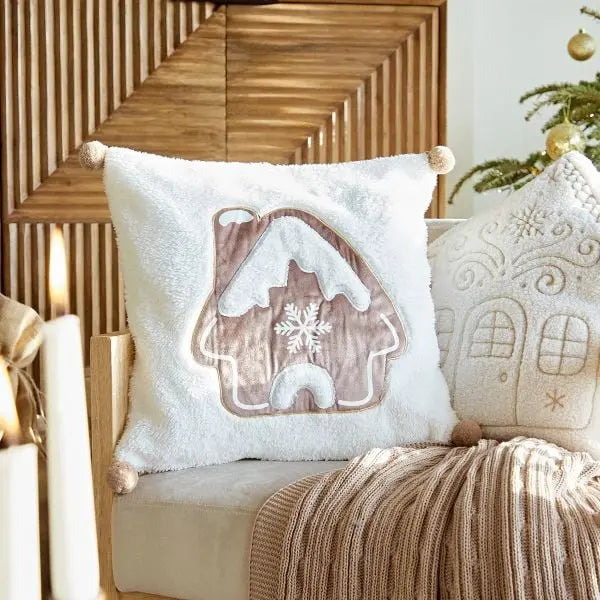 Der YULINO Kissenbezug eignet sich ideal als winterliche Dekoration. Dank des weichen Sherpa-Fleece fühlt er sich flauschig und angenehm warm an. Die Vorderseite ist mit einem niedlichen Häuschen verziert, und die Ecken sind mit Pompons geschmückt. Die Kombination aus Weiß und Braun verleiht dem Kissenbezug einen stilvollen Look, der sich harmonisch in die meisten Einrichtungsstile einfügt.