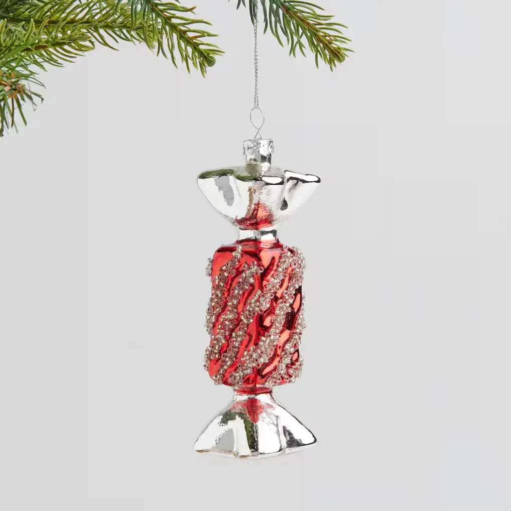 Rote Weihnachtsdekoration in Form von Süßigkeiten. Ideal zum Aufhängen an einem Weihnachtsbaum oder einem Zweig in einer Vase. Es wird dazu beitragen, eine angenehme Weihnachtsatmosphäre zu schaffen.