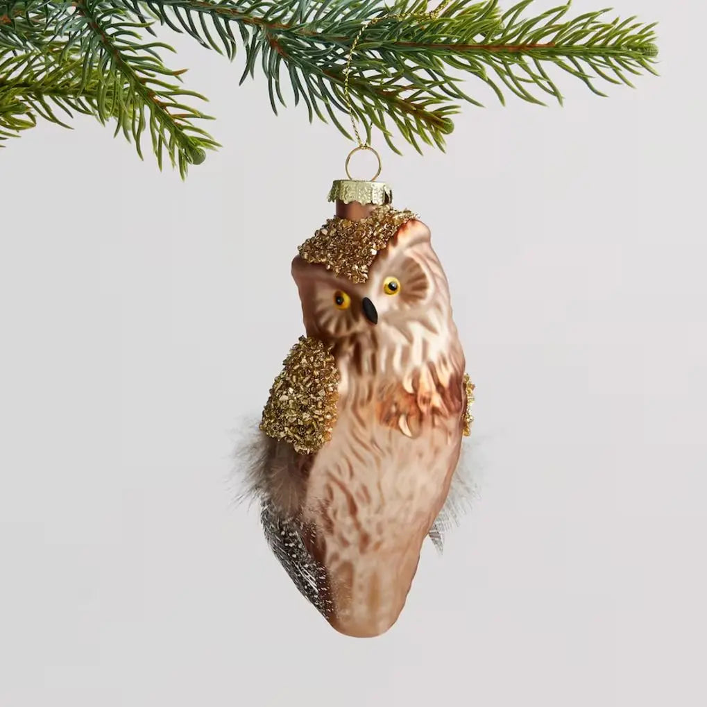 Braune Weihnachtsdekoration in Form einer Eule. Ideal zum Aufhängen an einem Weihnachtsbaum oder einem Zweig in einer Vase. Es wird dazu beitragen, eine angenehme Weihnachtsatmosphäre zu schaffen.