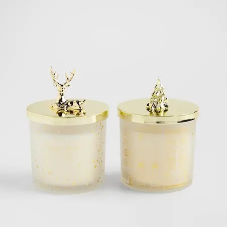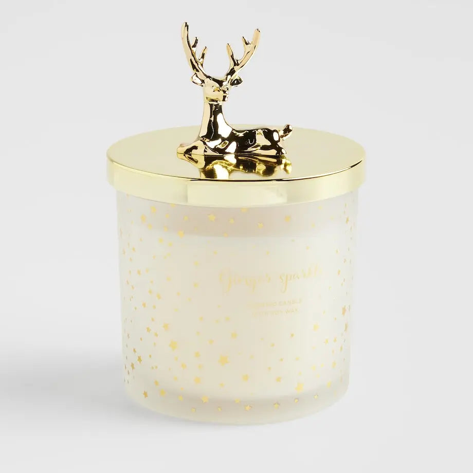 Luxuriöse Duftkerze „Ginger Sparkle“ mit goldenem Rentier