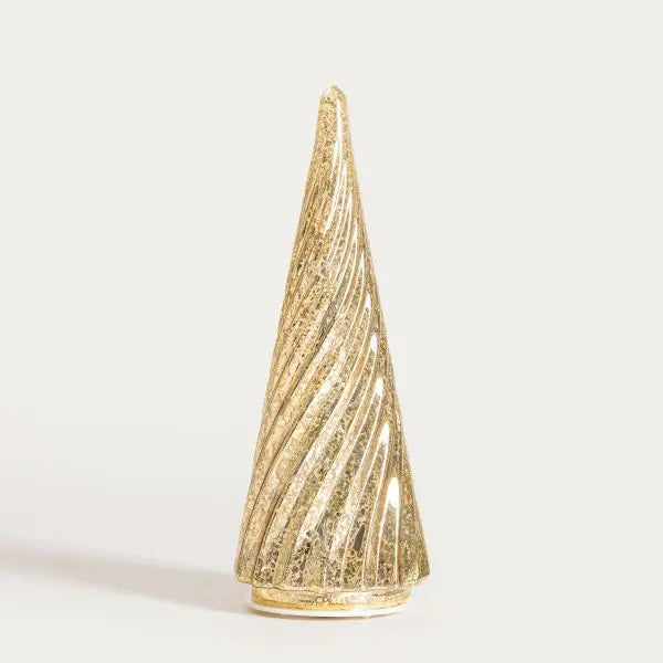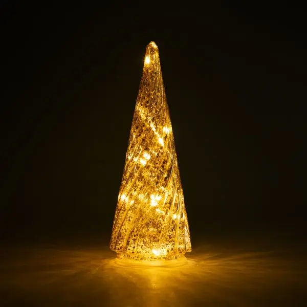 LED-Laterne aus Glas, Weihnachtsbaum, goldfarben, 10 × 25 cm