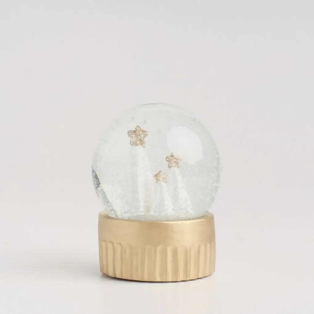 Goldene Weihnachtsschneekugel. Es wird dazu beitragen, Ihr Zuhause gemütlicher zu machen und die perfekte Weihnachtsatmosphäre zu schaffen.