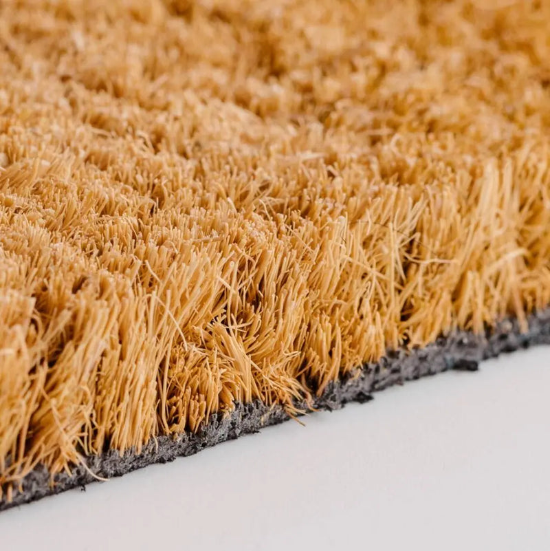 Braune Fußmatte aus PVC und Kokosfaser mit der Aufschrift „I like it dirty“.