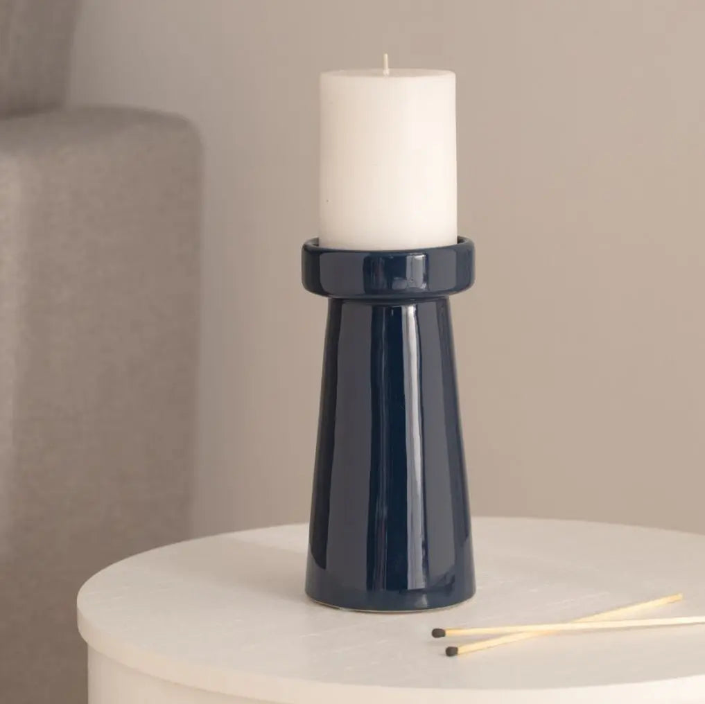Blauer Kerzenhalter. Es wird Ihren Esstisch perfekt schmücken oder Ihre Inneneinrichtung ergänzen. Es findet in jedem Raum seinen Platz und seine Anwendung und verwandelt ihn schön. Das warme Licht der Kerzen schafft in jedem Raum eine ruhige und gemütliche Atmosphäre.
