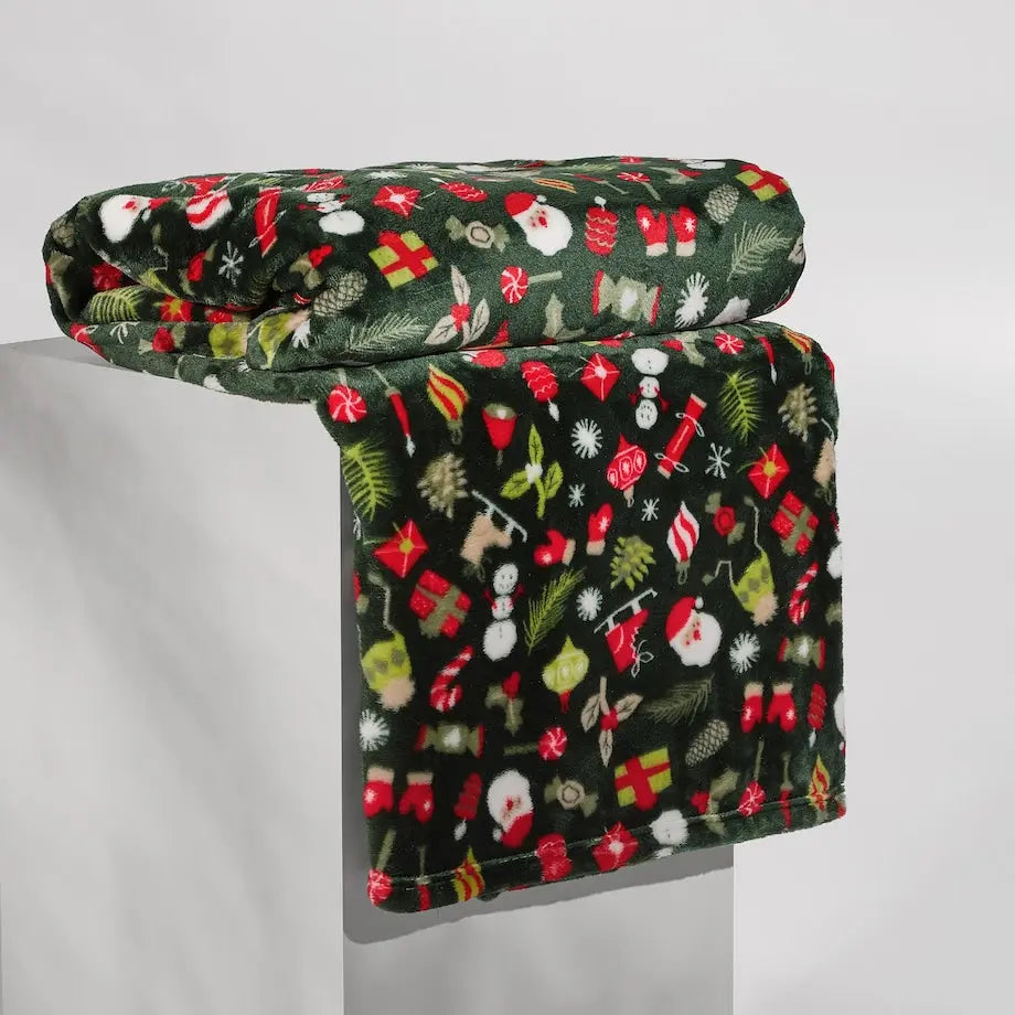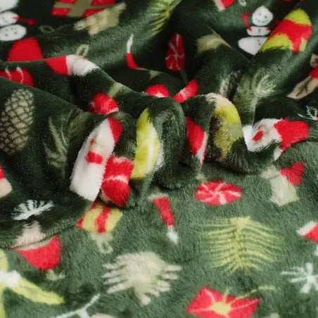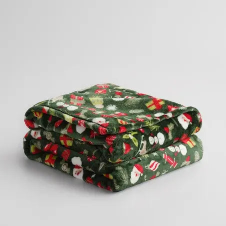 The blanket has a festive pattern on a dark green background. Charming snowmen, gifts, Santa Claus and other festive motifs in shades of red, white and green create a magical Christmas atmosphere. The printed Festio blanket perfectly complements interiors in classic, Scandinavian and rustic styles. It is also a great idea for a Christmas gift for a loved one.