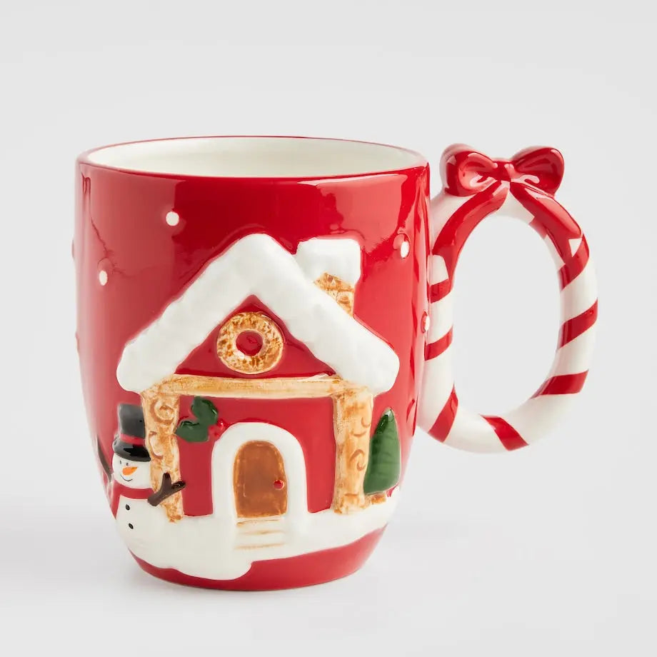 Christmas Ceramic Mug with Gingerbread House Decoration