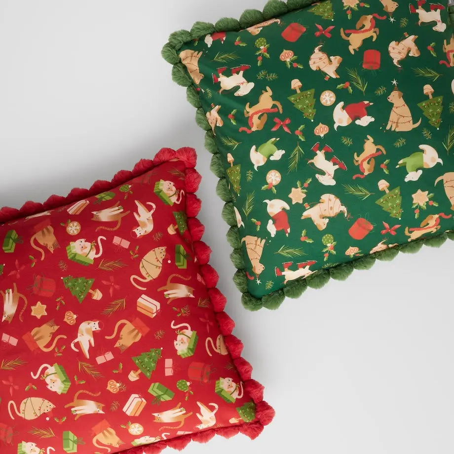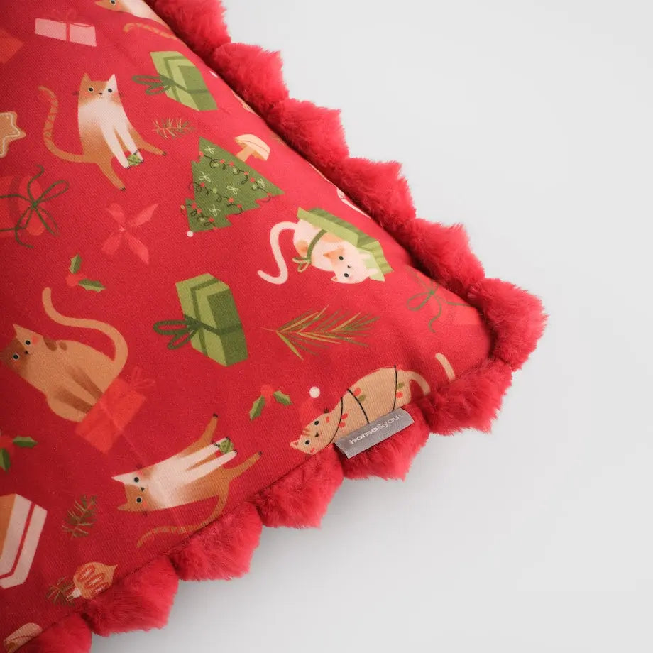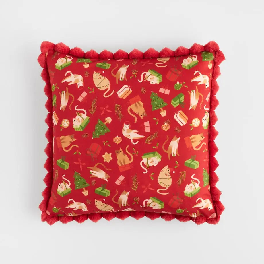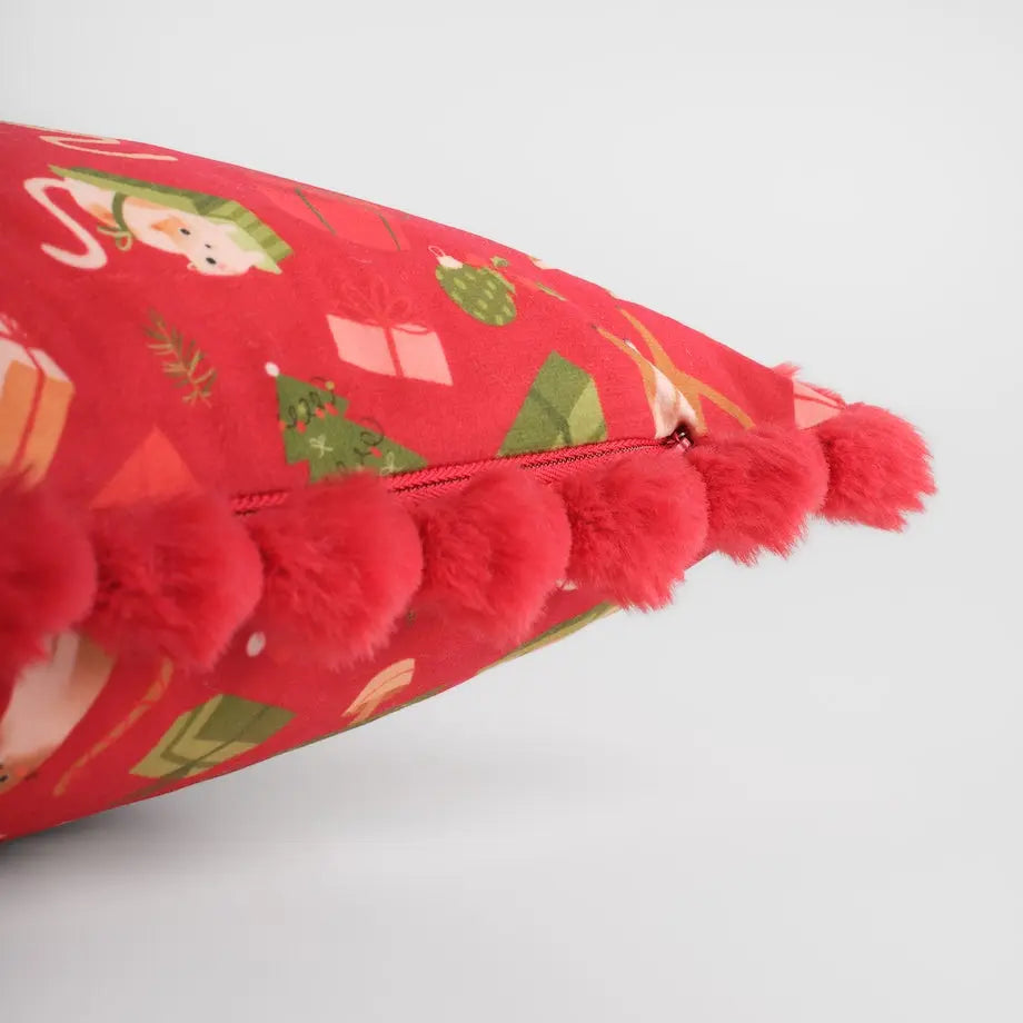 Feel the magic of Christmas with Miaoumas printed pillowcase . Cute pattern, soft material and festive atmosphere they will deliver to your home unique charm and coziness . Red The color and fluffy pompoms will add a touch of whimsy to the interior. Christmas fantasy .