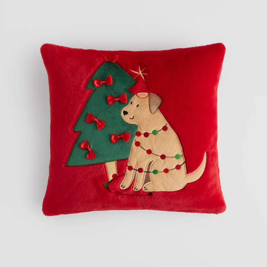 Red A pillowcase with an embroidered motif of a dog in a Christmas hat and a Christmas tree decorated with bows is the quintessence of Christmas magic. Vivid colors and fairy tale design They will liven up any interior and give it a festive character. The Pawty pillowcase is perfect for living rooms, bedrooms and children's rooms. It is also great gift idea for a loved one.