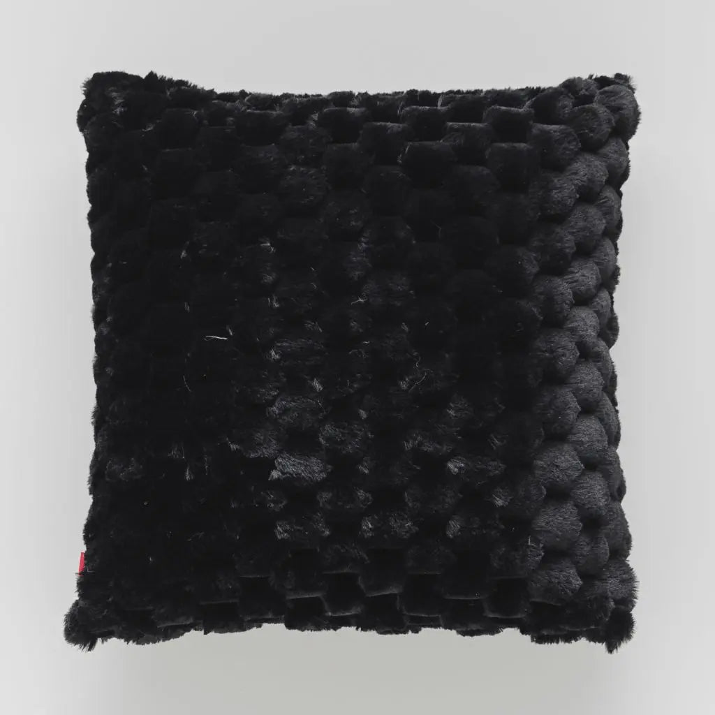 Black polyester pillowcase. Decorative pillowcases are a great and simple way of refreshing the interior and at the same time a proven recipe for a new design of your couch or bed. The Feros pillowcase is a black decorative pillowcase made of plush material with a geometric texture. Zip closure.