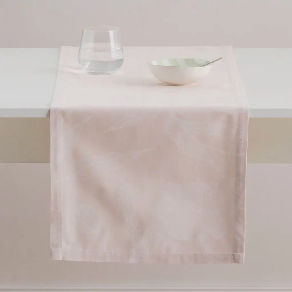 Pink cotton stole. Liven up your table with a pastel pink decorative stole adorned with soft, bright flowers. Made of high-quality cotton, it radiates warmth and elegance. The pastel shade of pink and delicate floral patterns create a harmonious and cozy atmosphere, ideal for any occasion. Add a romantic and fresh touch to your interior.