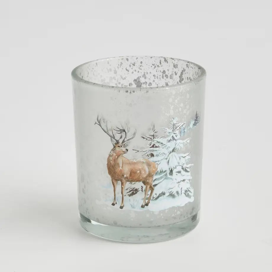 Elegant candle holder made of glass. Ideal for creating an atmospheric atmosphere, ideal for small candles. Its winter design blends with various interior styles and adds a subtle elegance to any room.