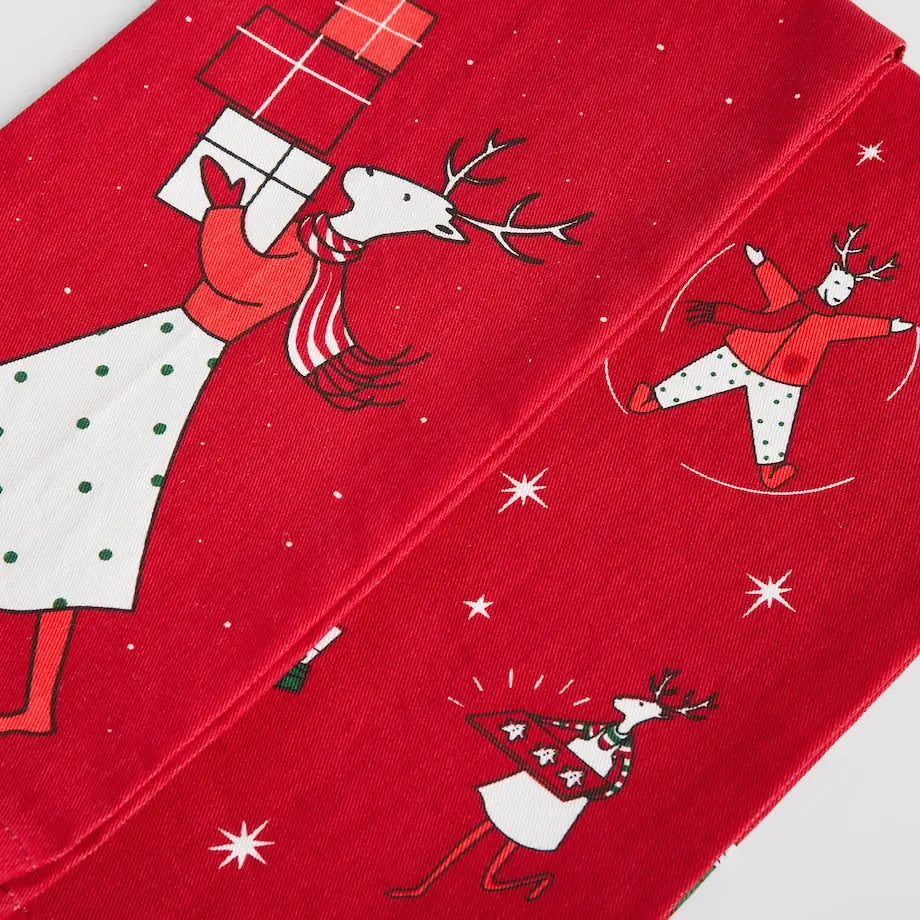 The red, intense color enriched with a Christmas print with reindeer motifs, gifts and stars creates a unique atmosphere for Christmas, but also enlivens the interior throughout the winter season. The simple yet cheerful design makes the olinerini a kitchen decoration in a classic, Scandinavian or modern style. It is also a great choice as a practical gift for loved ones.