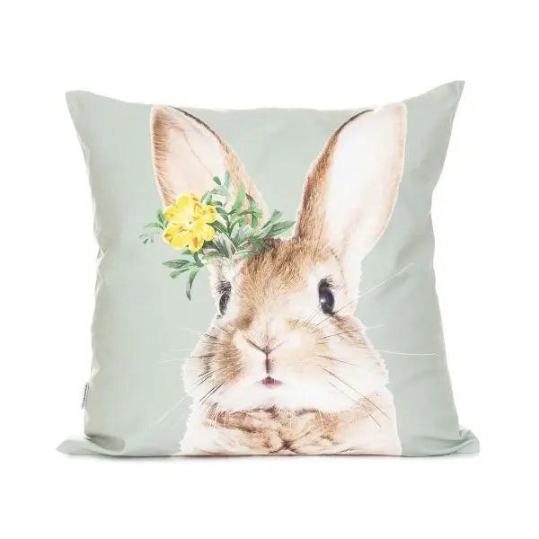 Dekoratívna obliečka na vankúš s králikom BRUCE prináša do interiéru ľahkosť, inšpirovanú prírodou a pokojom jarnej záhrady. Jemný zvierací motív a jasná pistáciová farba vytvárajú príjemnú, sviežu kompozíciu, ktorá krásne vyzerá na pohovke, kresle alebo posteli. Dekoratívna potlač upúta pozornosť a dodáva interiéru jemný, prirodzený charakter. Takýto akcent dokonale dopĺňa sezónne aranžmány, no zároveň dobre funguje v priestoroch inšpirovaných prírodou počas celého roka.