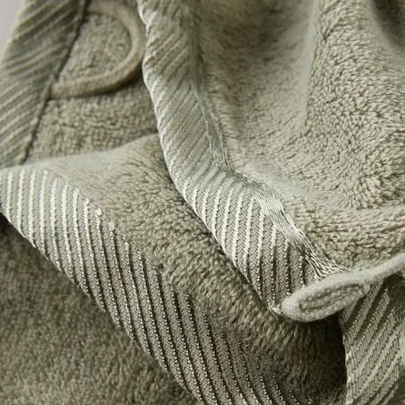 The first touch of the 100x150 cm Bambo towel is the beginning of a daily ritual of comfort, as if you had just entered a lush garden after a summer rain. The soft shade of green evokes the harmony of nature and brings a sense of peace and renewal to your bathroom. The carefully selected minimalist design impresses with its timeless simplicity and graphically edited edging, which emphasizes precision and craftsmanship.
