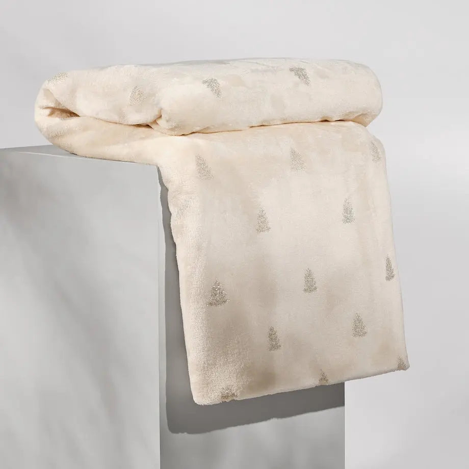 The Genna blanket impresses with its delicate design. The light beige shade provides an elegant base for the delicate golden Christmas tree pattern and gives it a festive touch. The blanket fits perfectly into any interior, from classic to modern, and adds coziness and warmth. It is also a great gift idea for a loved one.