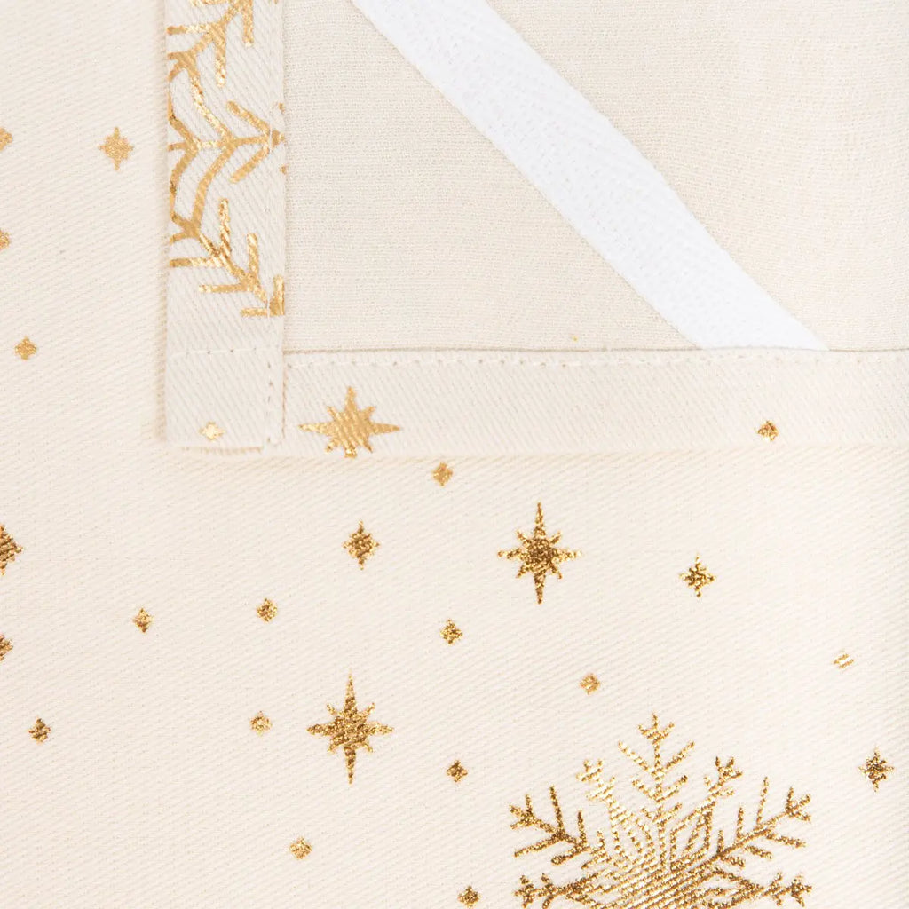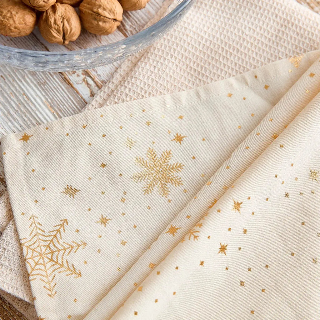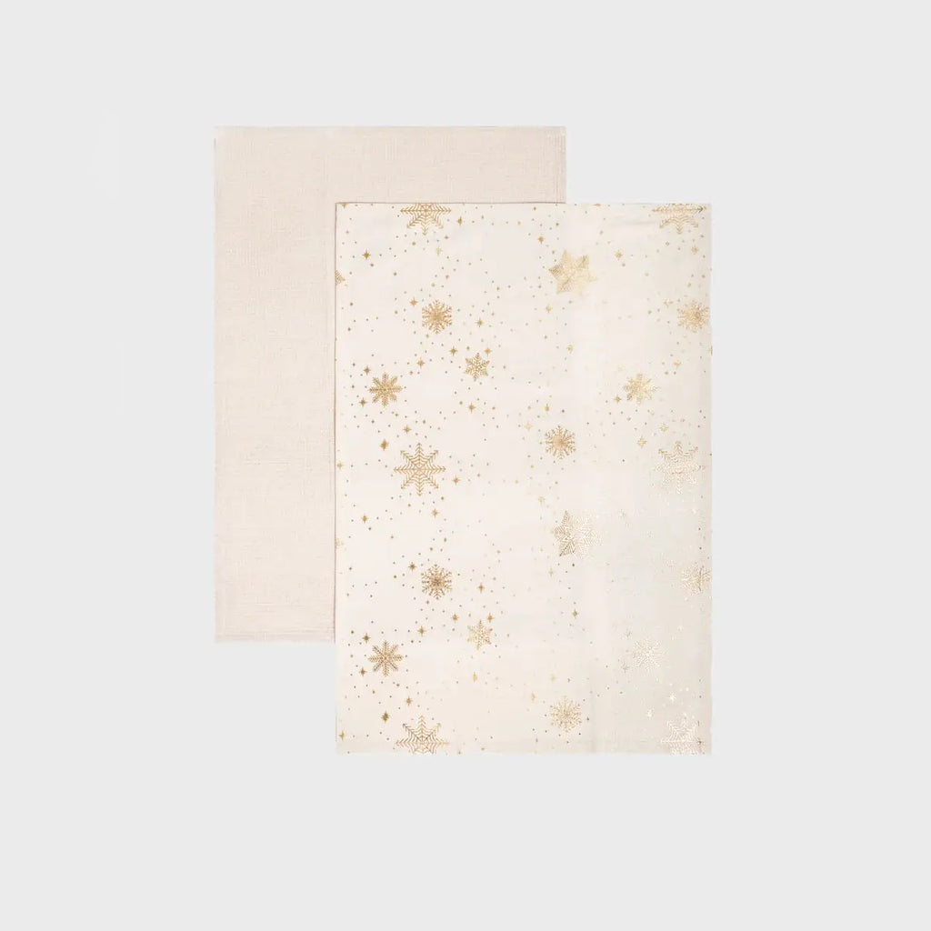 Bring a touch of holiday sparkle to your kitchen with the STARBLOOM Tea Cloth Set. The gold snowflake and star pattern on one cloth pairs perfectly with the simple, waffle pattern on the other. This combination of style and functionality makes these cloths not only practical, but also decorative.